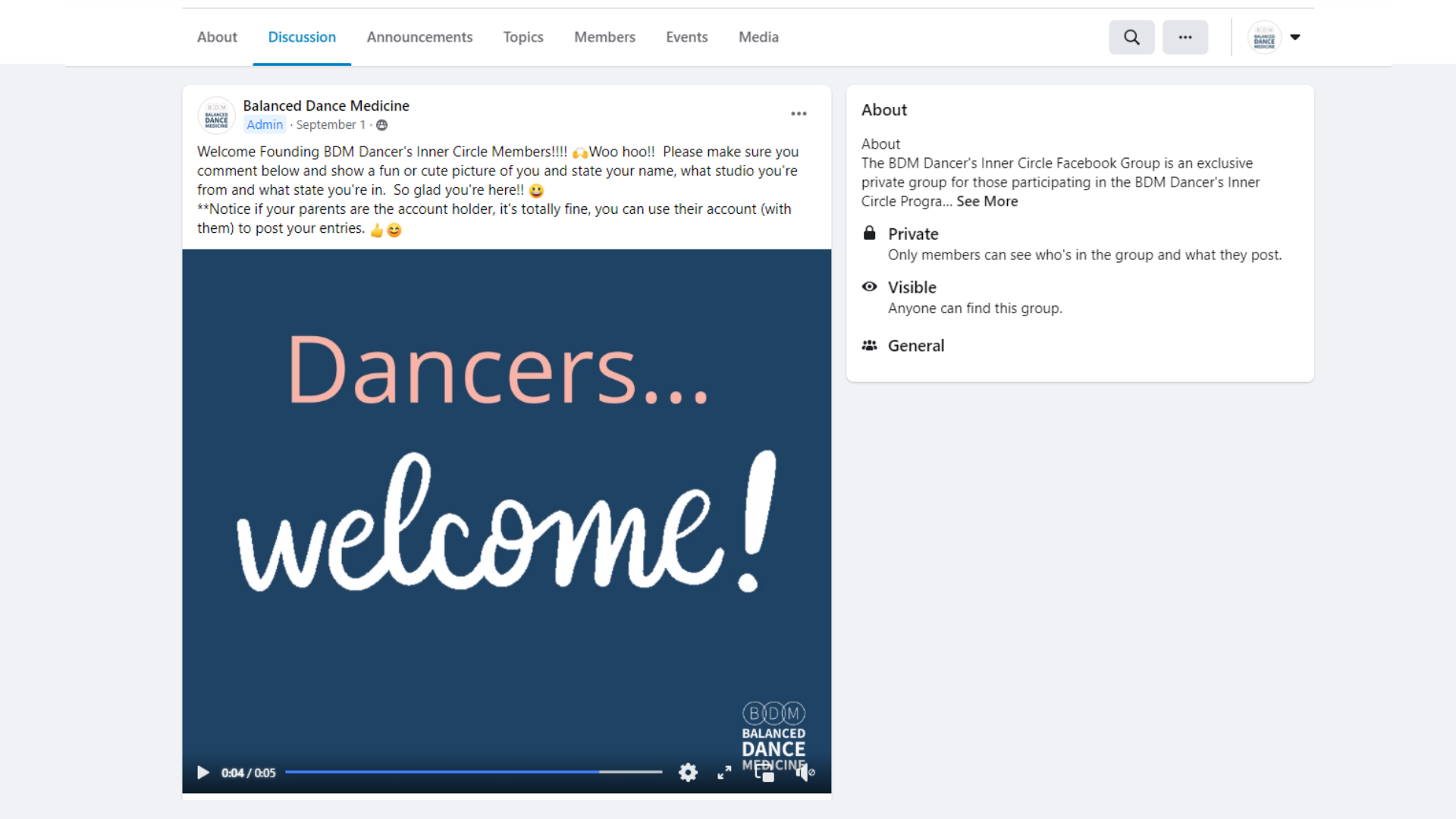 The BDM Dancer’s Inner Circle Facebook Group is an exclusive private group for those participating in the BDM Dancer’s Inner Circle Program. This is the perfect place to discuss your progress, share your performances and competition endeavors, ask your general questions you have about the training and things related to dance, and hang out with likeminded dancers!
